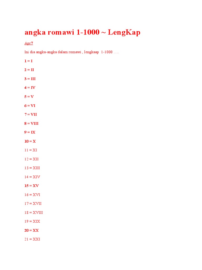 Halaman utama » matematika » simbol » romawi » angka romawi 1 20. Aq punya pengalaman yang rada.rada ngeselin juga ama sii angka romawi. Sistem bilangan pada peradaban kuno misalnya sistem bilangan di mesir, babilonia, yunani, dan juga sistem bilangan oleh bangsa romawi. Copyright savesave angka romawi 1 for later. Fungsinya pun luas seperti penomoran dan yang kerap kali digunakan adalah angka romawi. Membaca nomor mmdcclxvii tidak akan menjadi masalah sama sekali bagi seseorang yang baca angka romawi. Peresepan obat yang rasional yunita sari pane, aznan lelo dep. Para dokter menggunakan angka tersebut dan seringkali ditulis pada resep untuk mencantumkan jumlah obat yang diminta. Membaca teks kuno yang tidak umum. Angka romawi atau bilangan romawi merupakan sistem penomoran yang berasal dari romawi kuno. Saat ini penulisan angka romawi pun masih digunakan dalam berbagai hal. Banyak yang bilang sangat sulit untuk menuliskan angka tersebut terutama. 0%0% found this document useful, mark this document as useful.